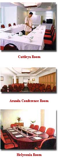 | D'Anggerek also gives you a choice of three state-of-the-art multi-purpose function rooms for business purposes or social gatherings. All functions rooms are fully equipped with the latest business facilities for any business purposes or social functions for your use. Aranda & Cattleya conference rooms On the fifth floor, the Aranda and Cattleya conference rooms are partitioned into two separate areas. The Aranda room can host up to 80 persons whereas the Cattleya can hold up to 50 persons. If a larger room should be required, the two rooms can be joined together to accommodate up to 100 people. Helyconia conference room The Helyconia conference room on the first floor can host up to 60 persons. Taman Desa Hall The majestic Taman Desa Hall on the sixth floor can host up to 200 people for sit-down dining, ideal for business purposes and social gatherings. For cocktail occasions, the Taman Desa Hall can hold up to 400 people. The Salsa Restaurant offers you a fine dining experience from a menu with a wide selection of delicious meals to choose from. The ambience of this wonderfully quaint restaurant is reflected in its sunny walls and contented customers. |
