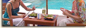 | Food and drinks are served at the bar, in the garden and around the pool. Menus are established in partnership with "elsewhere", "the Shop", "Comme à la Maison", all having a high reputation for quality catering. Continental breakfast is served from 7:00 to 10:00. In the afternoon and in the evening, the bar serves a large variety of cocktails and natural fruit juices. |