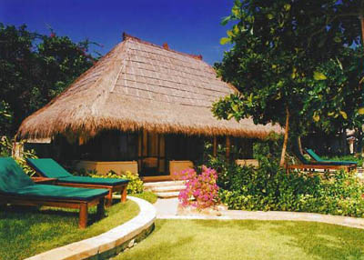 The resort offers a Balinese village atmosphere using thatch roofing in a low-level design. Individual rooms are very well designed and they all have either a balcony or a small garden. The ultimate in accommodation are the 12 exquisite Beach Cabanas, blending contemporary and traditional Balinese designs. Each has its own private sunning garden and a Balinese open air bath tub, with a separate shower