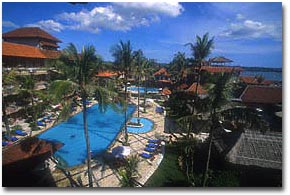 It is set amongst lush tropical gardens, and offers a wide range of international standard facilities combined with genuine Bali hospitality. You can choose to relax by the 2 pools or pamper in Spa, where you can enjoy soothing massage and a range of traditional health treatment. You can also venture down to the local Jimbaran market, fish market or sunbath on the beach. The white sandy beach and the hotel are separated by road, and along the road there are local seafood cafes. |