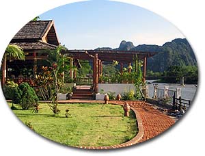 | A 3 hour drive by road from Vientiane, or a 5 hour drive from Luang Prabang, Villa Nam Song is built on the bank of the Nam Song River with traditional colonial style architecture and decoration, and surrounded by a lush tropical garden. All 16 rooms have individual air conditioning, ceiling fan, hot shower a comfortable bedding facilities. An ideal place for stopover on the road to Luang Prabang, or for relaxing week ends, or for private seminars. |