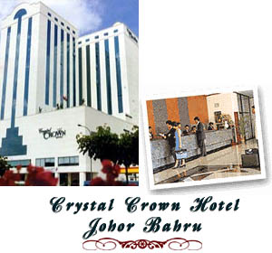 | The Crystal Crown Hotel, Johor Bahru having first opened its door on 16 January 1993. The hotel has earned a fine reputation as a business traveller "home away from home". Like all our hotels, it is strategically located for the convenience of the discerning business traveller. Truly a " Choice Business Class Hotel" in terms of its location. Only half hour drive from Senai Airport, it is a short drive to the Singapore Causeway and the North South Highway. Crystal Crown Hotel, Johor Bahru boasts a modern business centre, a spacious and well equipped Crown Executive Health Club and a wide range of services including 24 hours coffee house, cocktail lounge, Japanese restaurant, limousine service, shopping arcades, travel and tour agency and indoor car park. |