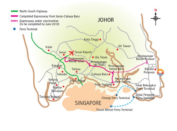 From Senai Airport or from Johor Bahru downton: takes approx 90Km (2.5 hrs).