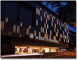 | A prominent landmark in the heart of bustling Orchard Road, Meritus Mandarin Singapore is an acclaimed five-star luxury hotel boasting world class facilities and rich Oriental charm. Boasting 1,051 lavish guest rooms equipped with broadband Internet access, comprehensive amenities and a panoramic view of the city from the higher floors, each room is designed with a harmonious blend of splendors and contemporary elegance. Besides offering luxurious accommodation backed by its signature Asian hospitality, guests can savour a smorgasbord of award-winning cuisines from Pine Court Chinese Restaurant and Chatterbox, Home of the Mandarin Chicken Rice. The hotel also offers expansive meeting and function facilities, as well as state-of-the-art audio-visual and lighting systems, making it the ideal choice for meetings, incentives, conventions and exhibitions. |
